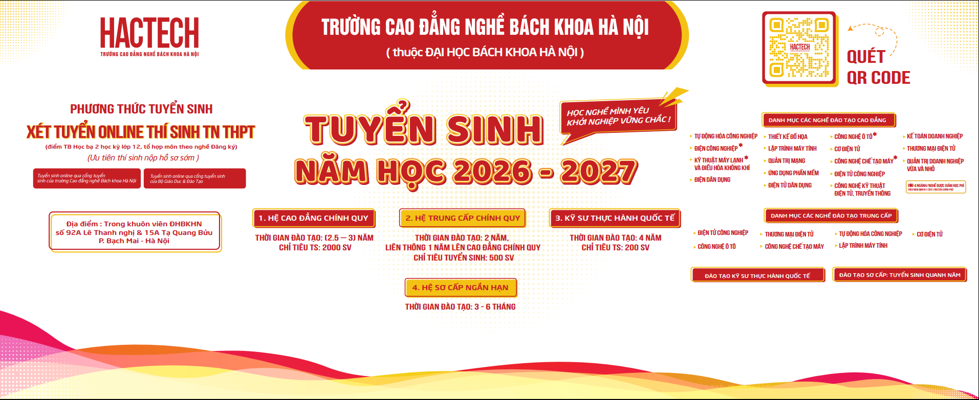Hưởng ứng Ngày hội Tư vấn tuyển sinh năm học 2026 - 2027, Trường Cao đẳng nghề Bách khoa Hà Nội sẽ tham gia gian hàng tư vấn tuyển sinh.