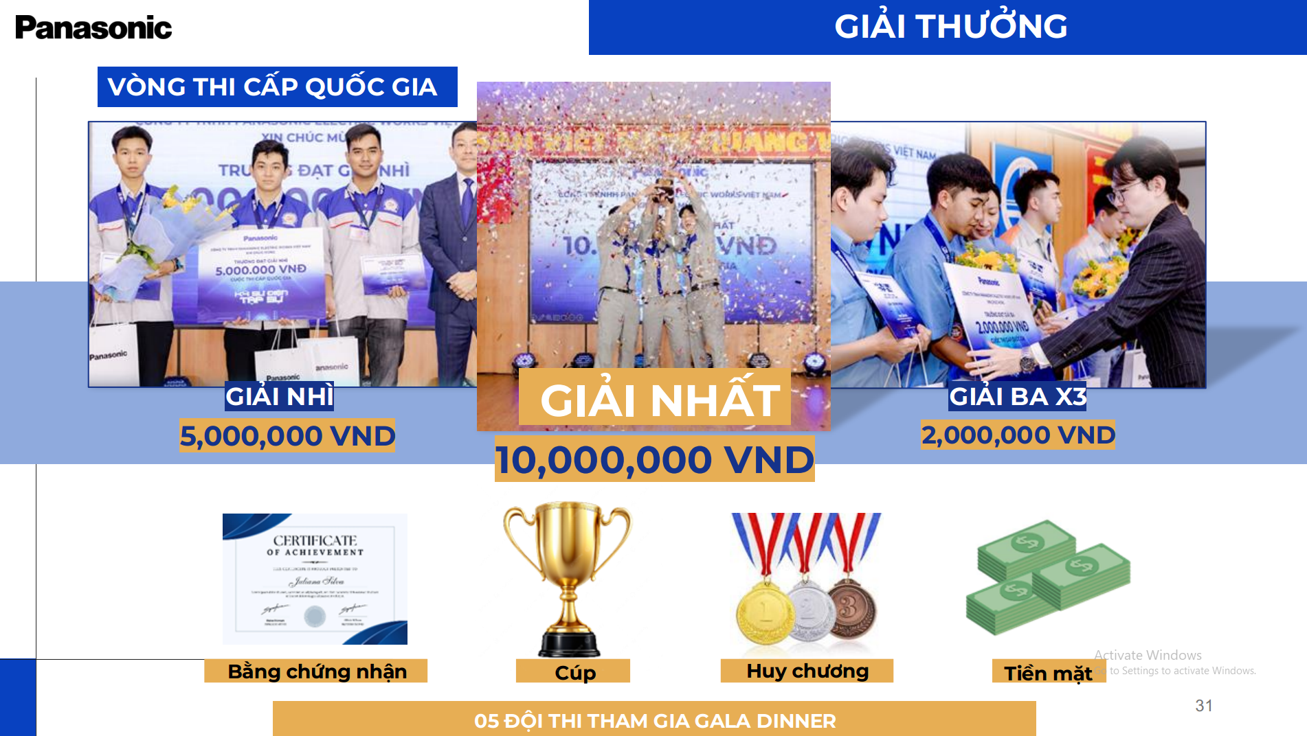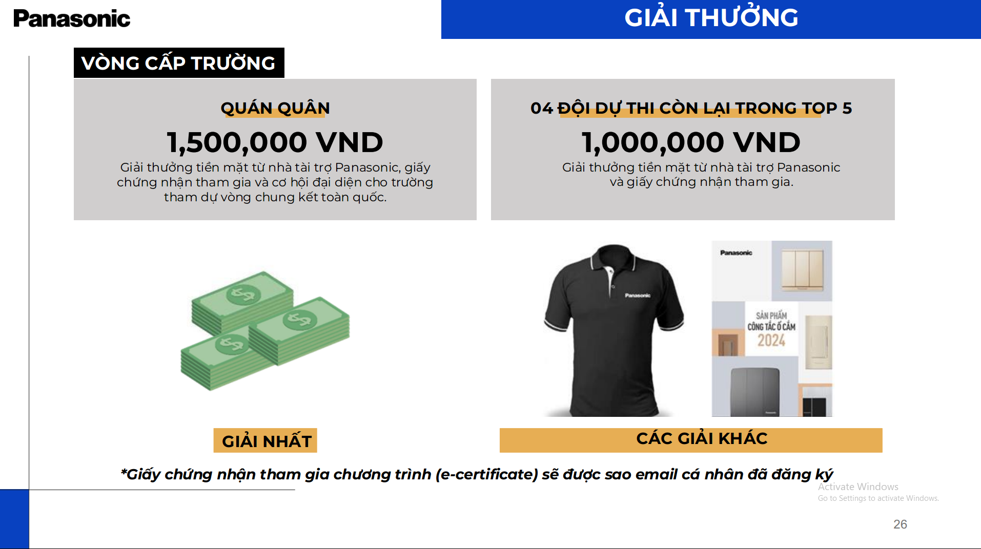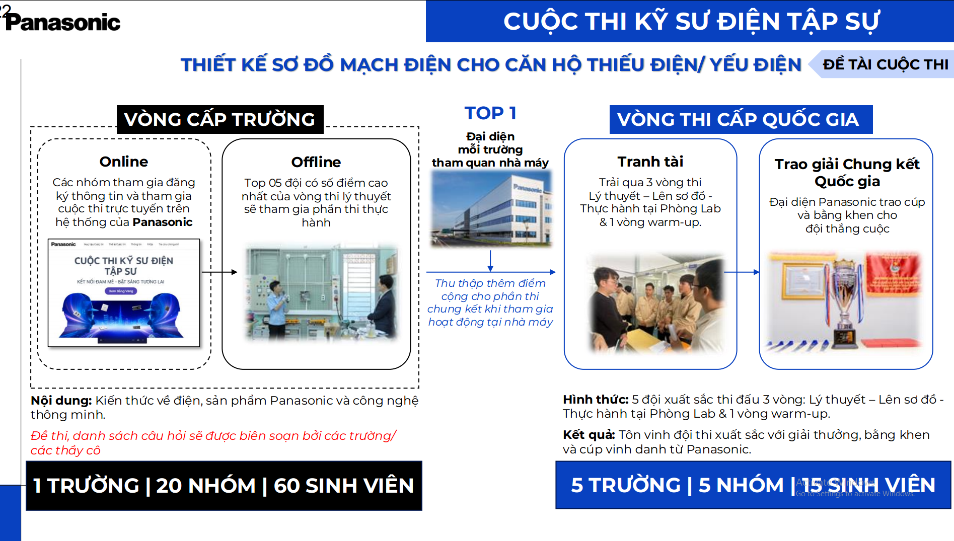 Bên cạnh giải thưởng hấp dẫn, đội đại diện cho Nhà trường tham gia vòng thi cấp quốc gia sẽ được một chuyến tham quan Nhà máy Panasonic và tài trợ chi phí đi lại đến TP Hồ Chí Minh.