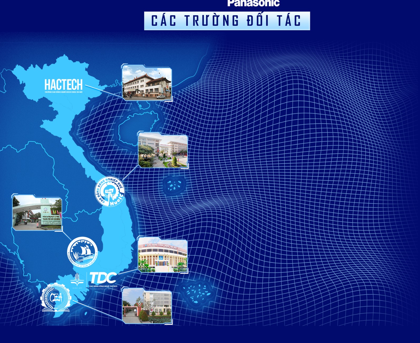 Cùng triển khai cuộc thi của Panasonic Electric Works Việt Nam là các Trường cao đẳng nghề Bách khoa Hà Nội, Trường Cao đẳng Công nghiệp Huế, Trường Cao đẳng Kinh tế kỹ thuật TP Hồ Chí Minh, Trường cao đẳng nghề Thủ Đức, Trường Cao đẳng công nghệ và Nông nghiệp Nam Bộ thông báo đồng tổ chức cuộc thi “KỸ SƯ ĐIỆN TẬP SỰ” dành cho sinh viên của trường, cụ thể như sau: