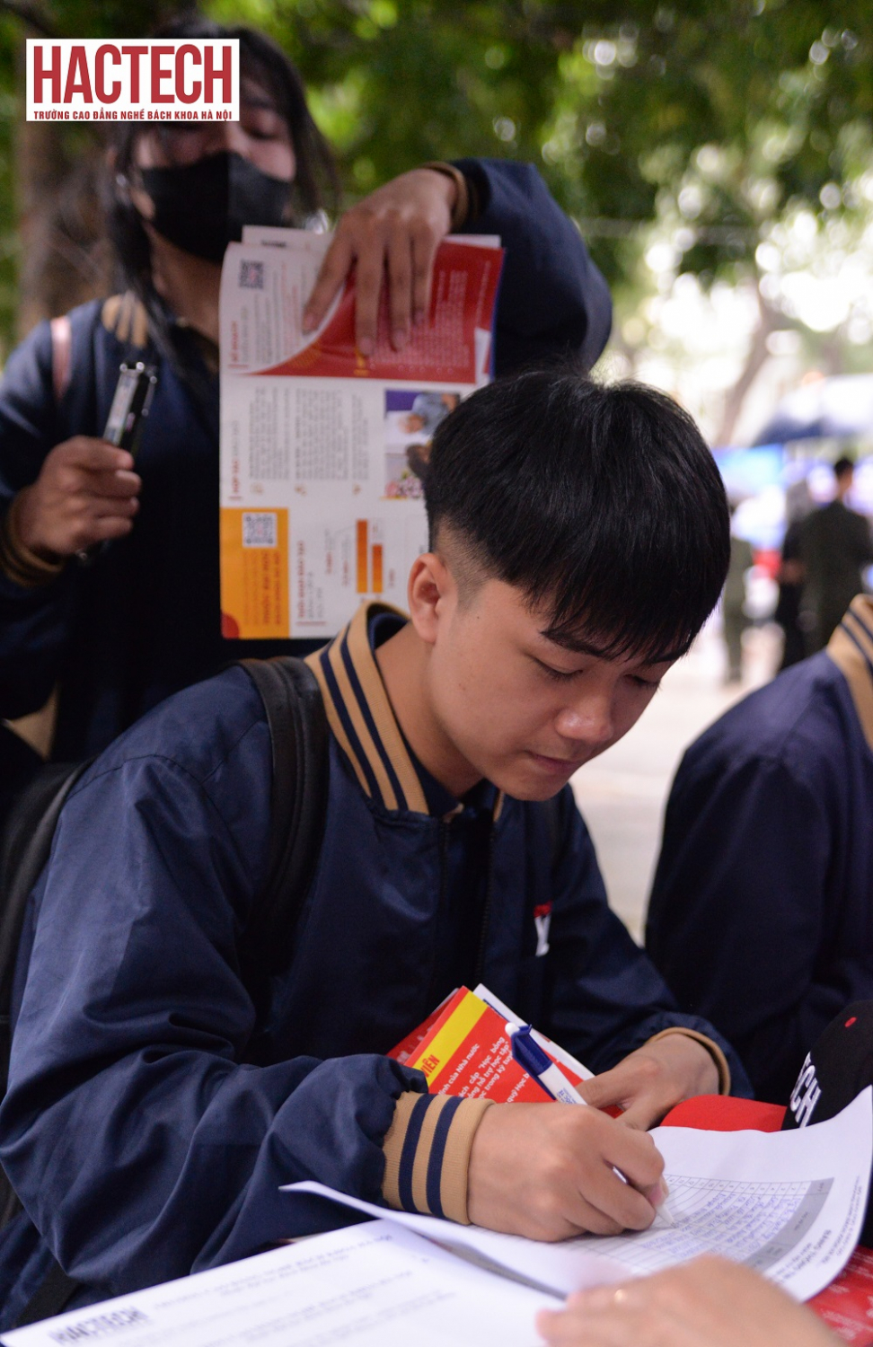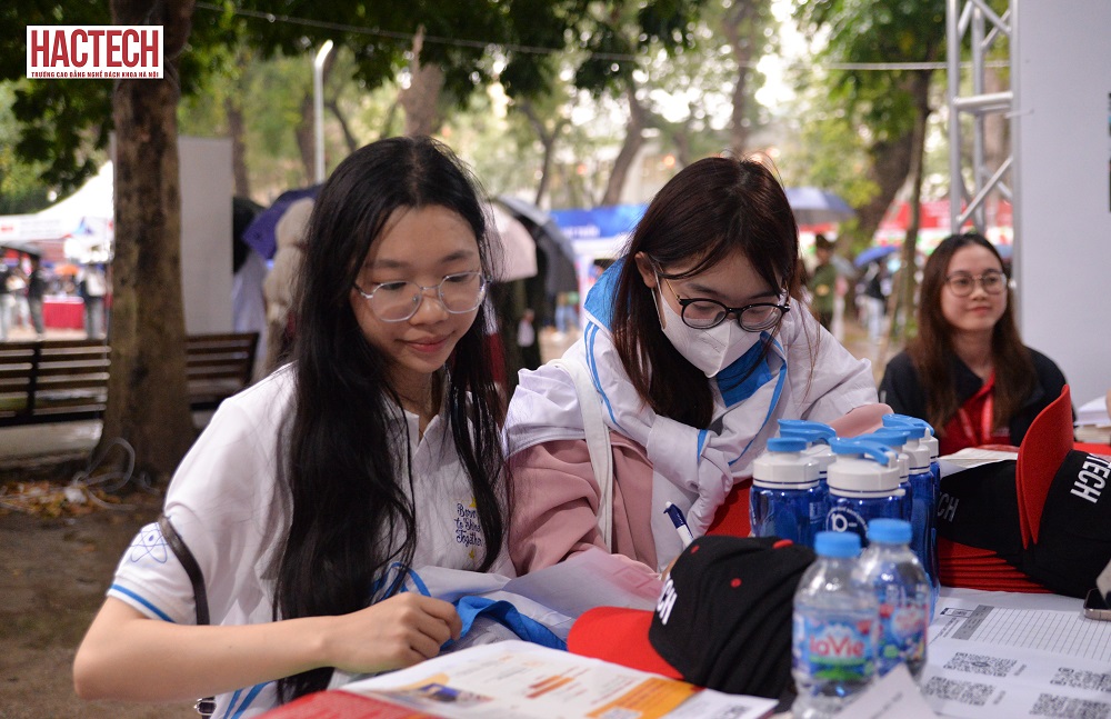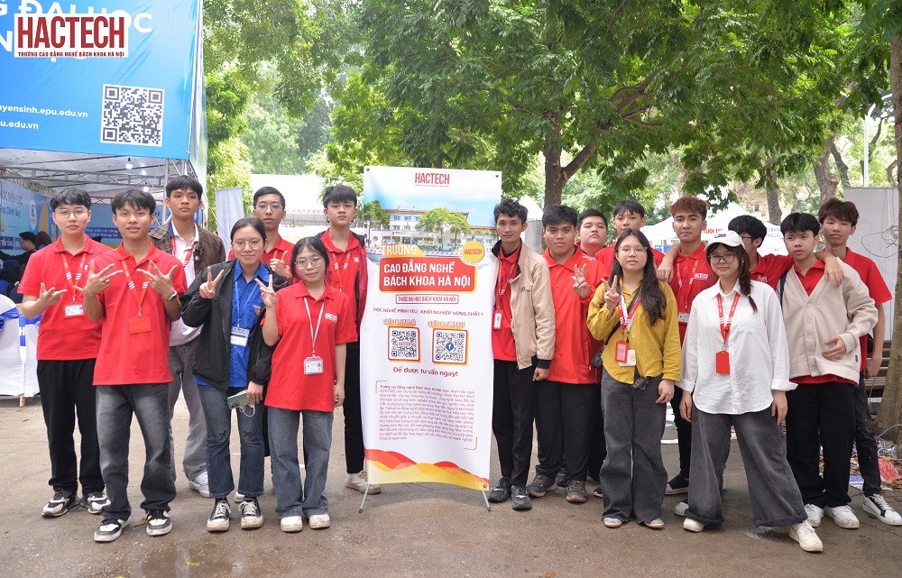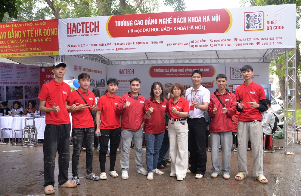 Tại ngày hội, gian tư vấn của Trường Cao đẳng nghề Bách khoa Hà Nội (HACTECH) đã nhận được sự quan tâm đặc biệt từ đông đảo học sinh và phụ huynh. Ngay từ đầu chương trình, nhiều thí sinh đã chủ động đến tìm hiểu thông tin tuyển sinh, chương trình đào tạo, cơ hội việc làm cũng như môi trường học tập tại nhà trường. Đội ngũ cán bộ, giảng viên và sinh viên của HACTECH đã trực tiếp tư vấn, giải đáp các thắc mắc của học sinh về ngành nghề đào tạo, thời gian học, cơ hội thực tập và việc làm sau tốt nghiệp.
