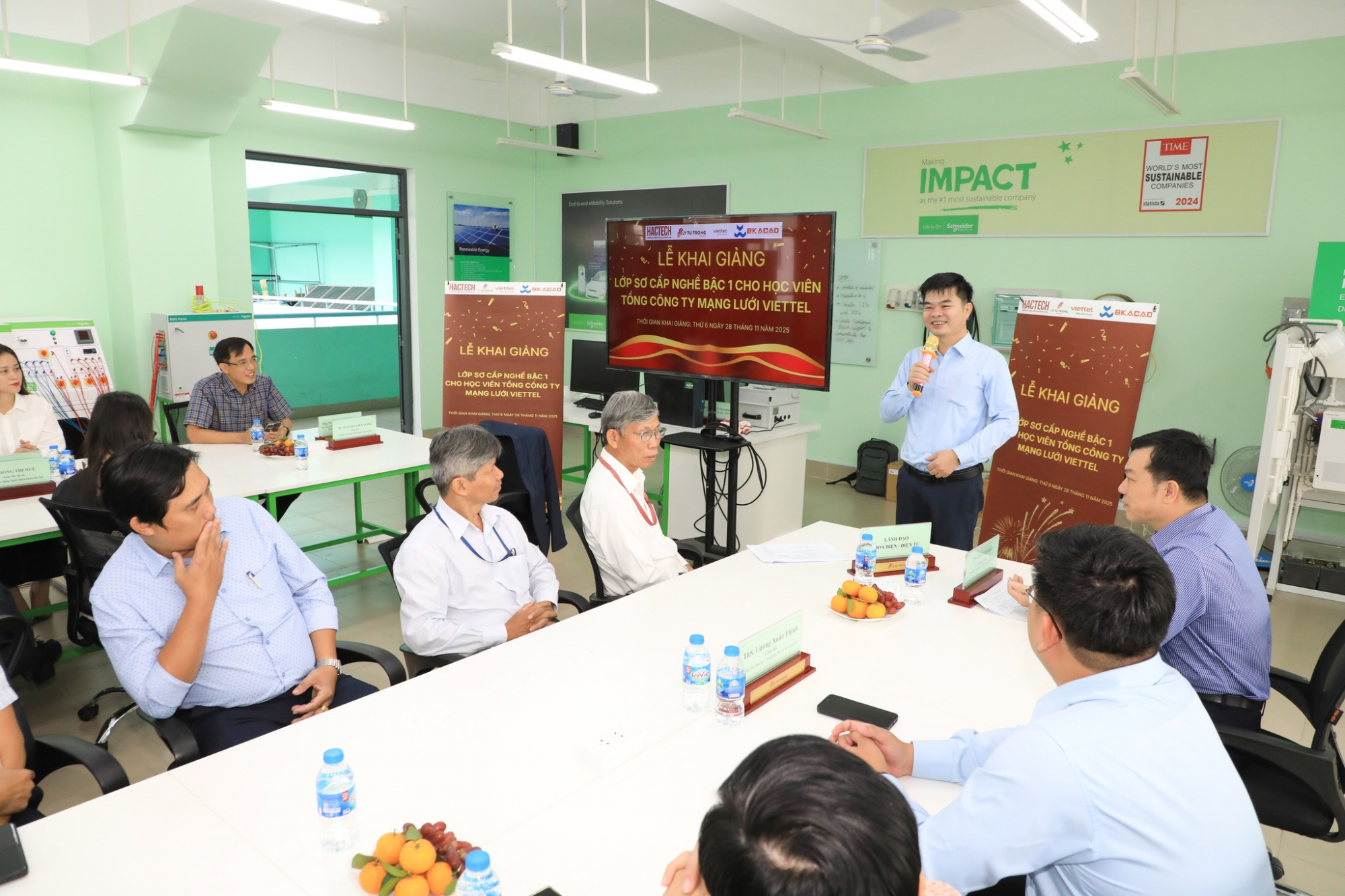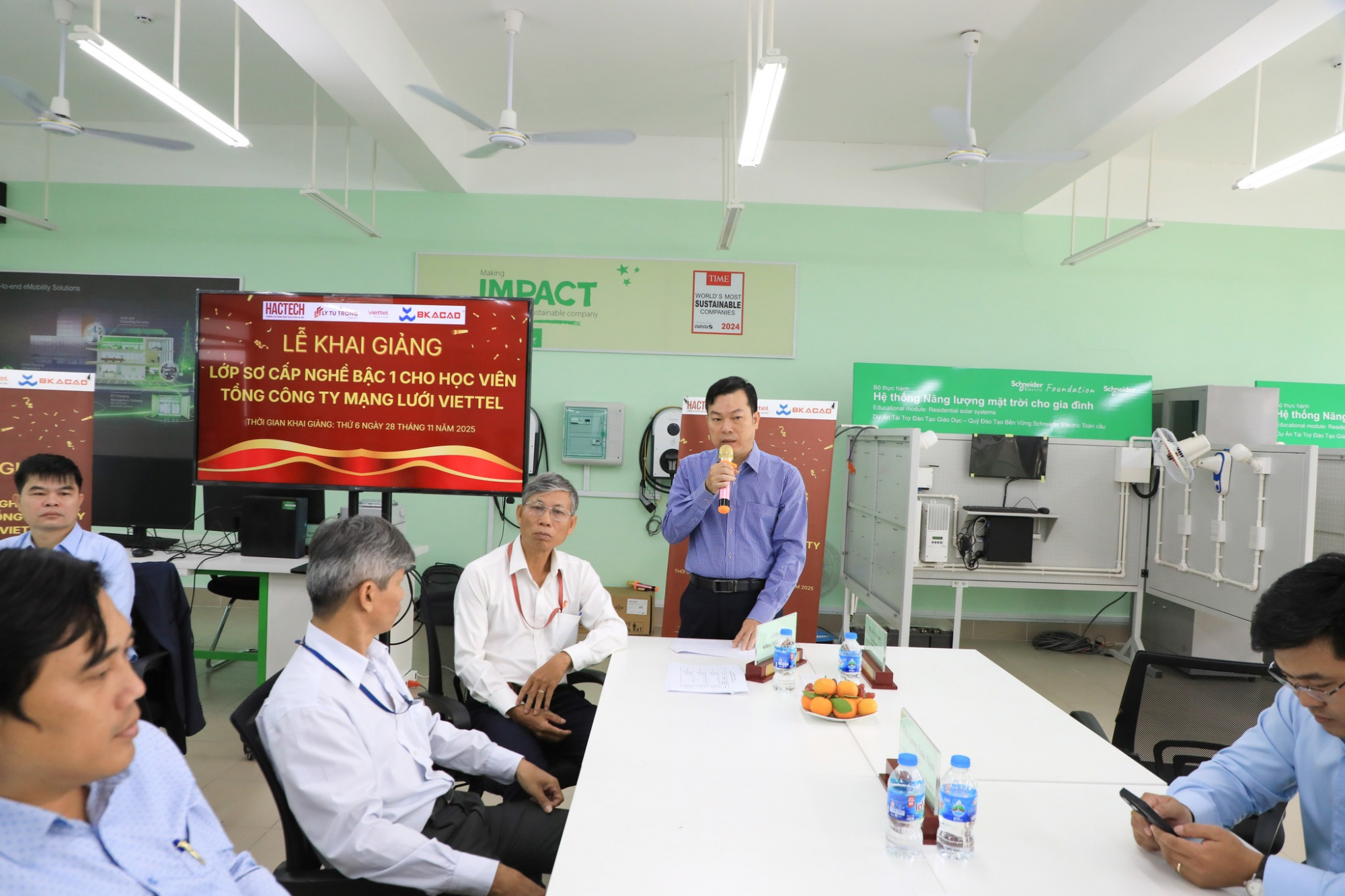 Sang ngày 28/11, đoàn công tác của HACTECH tiếp tục di chuyển vào Trường cao đẳng Lý Tự Trọng (TP Hồ Chí Minh) và khai giảng lớp sơ cấp nghề bậc 1 cho 21 học viên Viettel, với chuyên ngành: Điện công nghiệp, Kỹ thuật máy lạnh – Điều hòa không khí.