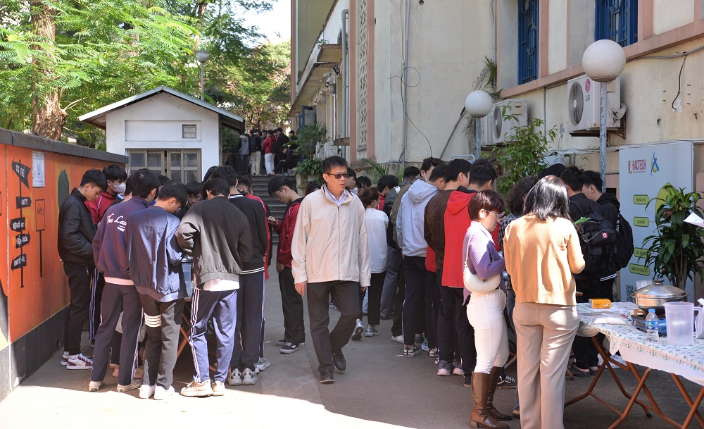 Sau phần Hội thảo, BTC đã tổ chức hoạt động trải nghiệm pha chế trà sữa chuẩn Đài Loan ngay phía ngoài Hội trường. Tại đây sinh viên HACTECH được trực tiếp đun nước, pha chế trà sữa theo công thức có sẵn.