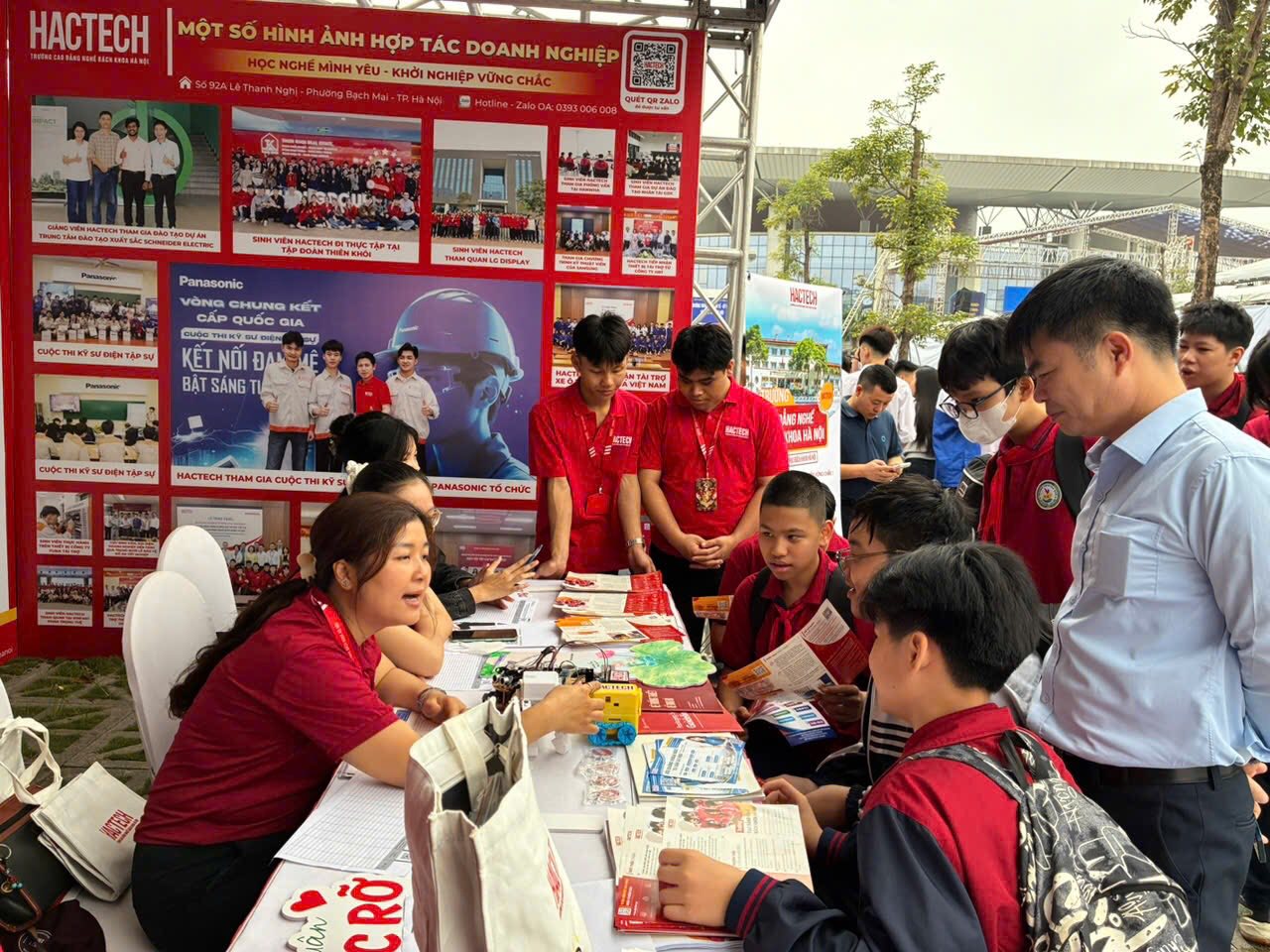 Tại sự kiện, gian hàng của HACTECH thu hút sự quan tâm của đông đảo học sinh, sinh viên nhờ cách tiếp cận trực quan, gắn liền với thực tiễn đào tạo. Nhà trường giới thiệu đa dạng các ngành nghề đang đào tạo theo hướng ứng dụng, bám sát nhu cầu của doanh nghiệp, đặc biệt trong các lĩnh vực như cơ điện tử, công nghệ ô tô, điện – điện tử, công nghệ thông tin và kinh tế quản lý.