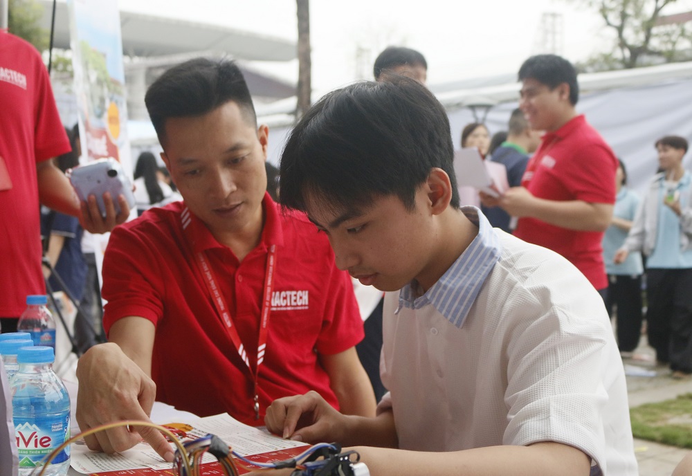 Bên cạnh hoạt động trưng bày, HACTECH còn tổ chức tư vấn hướng nghiệp trực tiếp 1-1 với sự tham gia của đội ngũ giảng viên, cán bộ tư vấn giàu kinh nghiệm. Nội dung tư vấn tập trung vào việc giúp học sinh nhận diện năng lực bản thân, lựa chọn ngành học phù hợp cũng như nắm bắt xu hướng nghề nghiệp trong bối cảnh chuyển đổi số đang diễn ra mạnh mẽ. Đây được xem là một trong những hoạt động thiết thực, giúp người học tránh tình trạng lựa chọn ngành nghề theo cảm tính, thiếu định hướng rõ ràng.