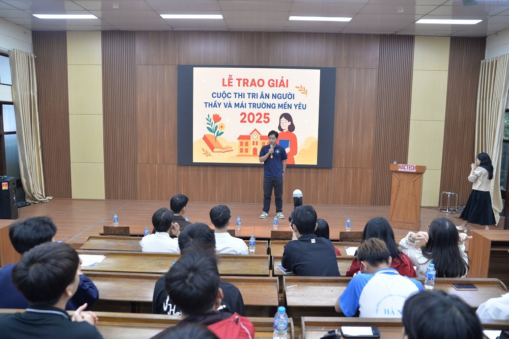 Phát biểu sau phần trao giải, đồng chí Trần Văn Thắng đã chúc mừng các tác giả đoạt giải, mỗi bài viết của các em thể hiện tình cảm chân thành, gần gũi đối với những thầy cô giáo trực tiếp dạy dỗ mình nói riêng cũng như toàn thể các thầy cô giáo HACTECH nói chung. Đồng chí Thắng hy vọng, trong thời gian tới Liên chi đoàn sẽ tổ chức các hoạt động, giải đấu, cuộc thi cho sinh viên và mong muốn sẽ nhận được sự hưởng ứng mạnh mẽ của sinh viên toàn trường.