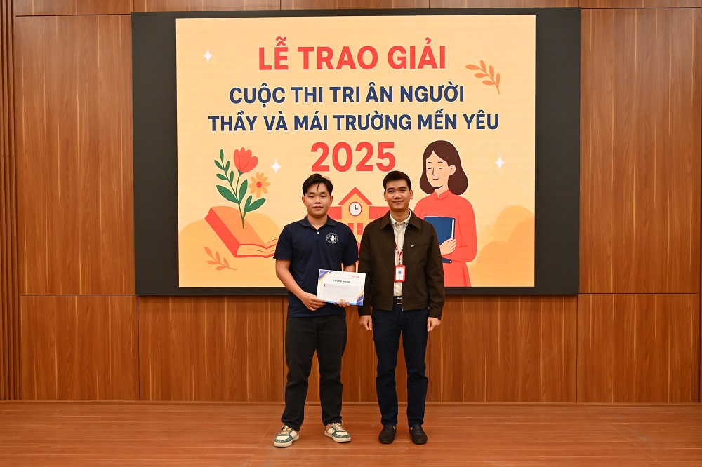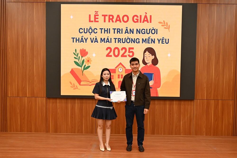 Phát biểu tổng kết cuộc thi, đồng chí Phạm Hồng Ngọc cho biết, cuộc thi Tri ân thầy cô và mái trường mến yêu 2025 tuy phát động trong thời gian ngắn những đã thu hút được đông đảo sinh viên gửi bài dự thi, trong đó có những bài dự thi giàu cảm xúc, lời văn trong trẻo cùng sự đầu tư hình ảnh, video clip sinh động. Qua các bài dự thi, chúng ta cảm nhận được sự kính mến của sinh viên đến những người lái đò thầm lặng, đó là cô giáo Nguyễn Thị Ngọc Ánh ân cần, tình cảm và gần gũi trong bài viết của Vũ Mạnh Cường. Đó là sự tôn kính trước một người thầy tuy nghiêm khắc nhưng hết lòng yêu thương, dạy dỗ học trò, chỉ mong học trò trưởng thành và trở thành một công dân có ích cho xã hội trong bài viết viết về thầy Đỗ Văn Uy của tác giả Phạm Thị Kim Ngân.