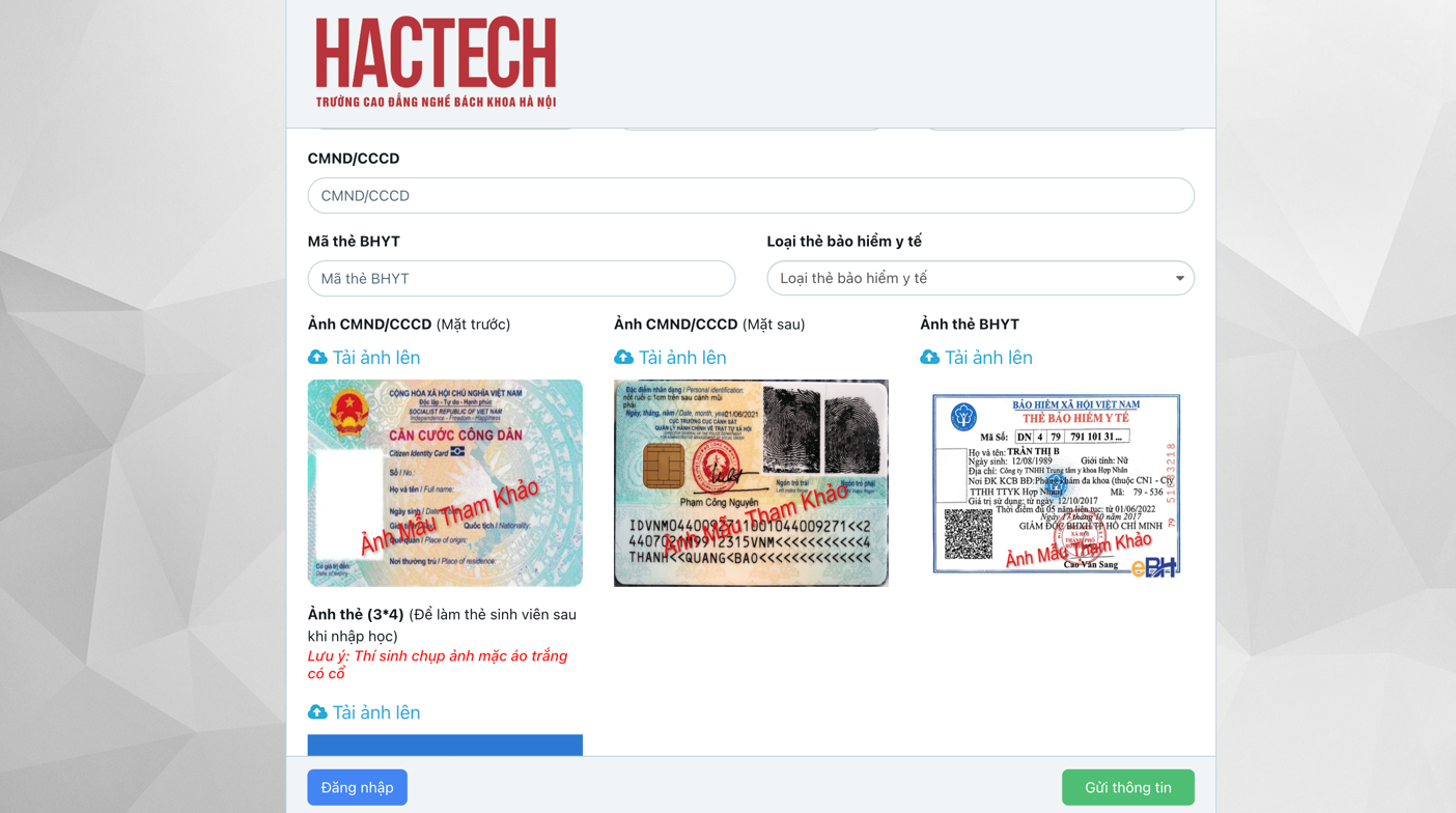 Bước 5: Sau khi điền đầy đủ thông tin cá nhân, thí sinh bấm Gửi thông tin