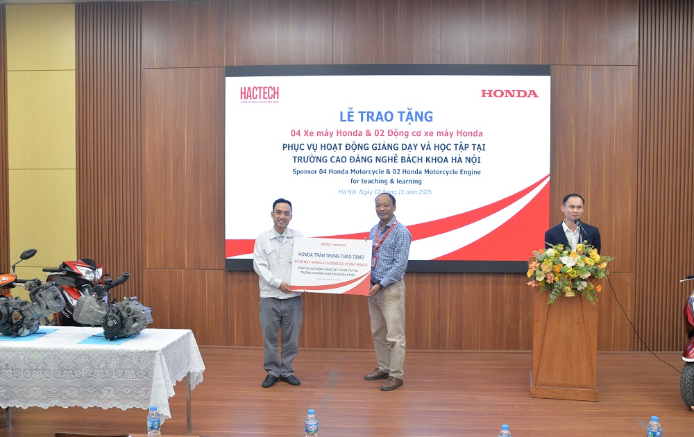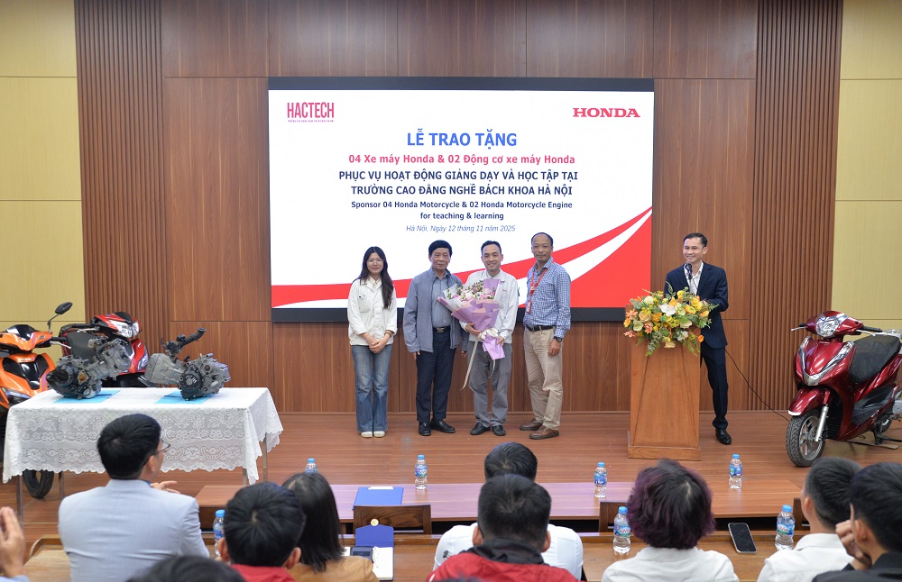 Ngày 12 tháng 11, Trường Cao đẳng nghề Bách khoa Hà Nội (HACTECH) đã tổ chức Lễ trao tặng thiết bị thực hành gồm 04 xe máy Honda và 02 động cơ xe máy từ Honda Việt Nam.