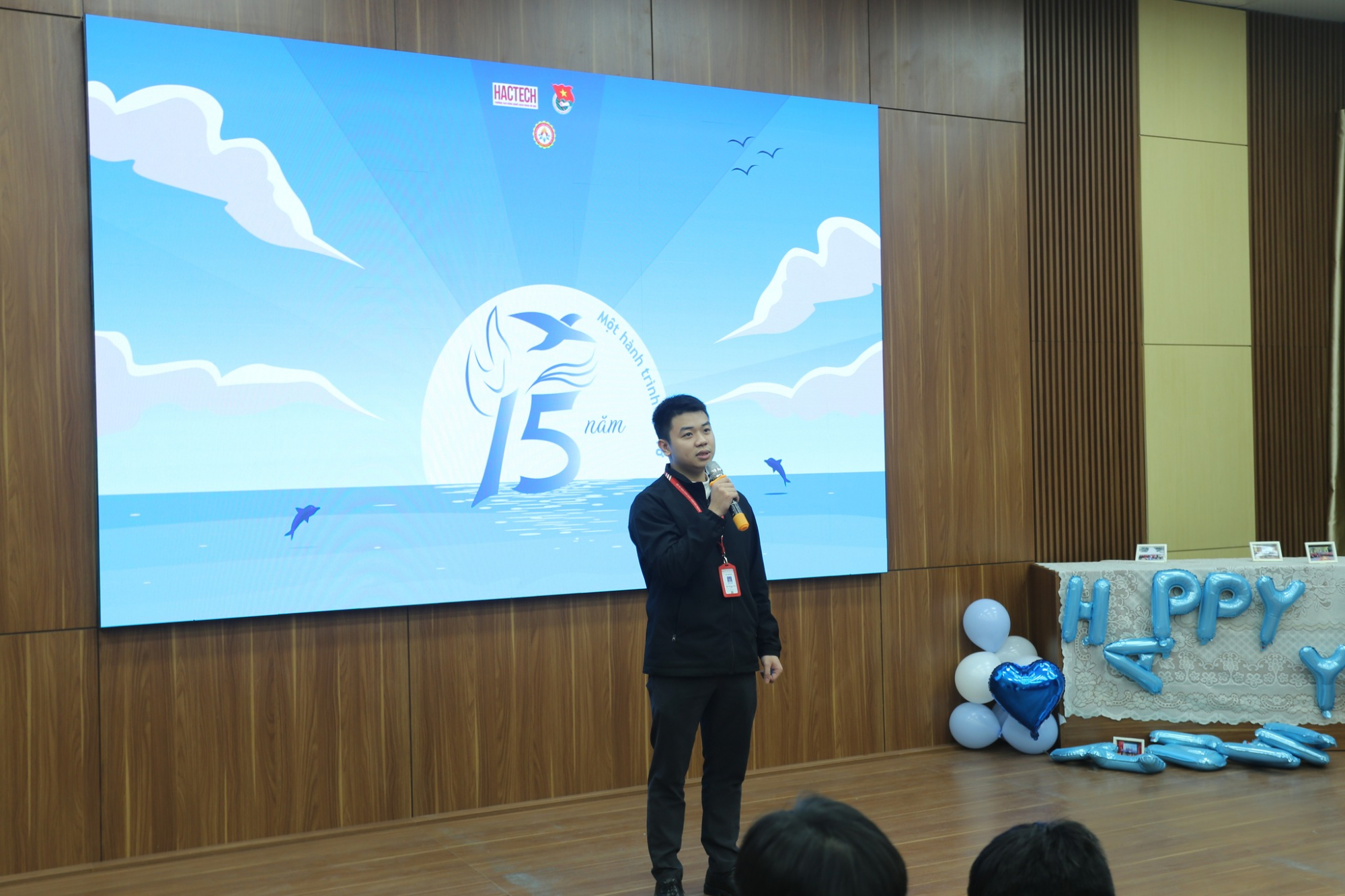 Phát biểu tại buổi lễ, đồng chí Vũ Ngọc Phúc chúc mừng Đội tròn 15 tuổi và đã đạt được nhiều thành tích nổi bật trong suốt hành trình vừa qua. Đội luôn phát huy tinh thần tình nguyện của tuổi trẻ, sẵn sàng tham gia, hỗ trợ những công việc, sự kiện của Liên chi đoàn, đặc biệt qua các mùa hè Đội luôn để lại dấu ấn trong chiến dịch Mùa hè Xanh, dấu ấn của tuổi trẻ HACTECH tại những nơi Đội đặt chân đến.