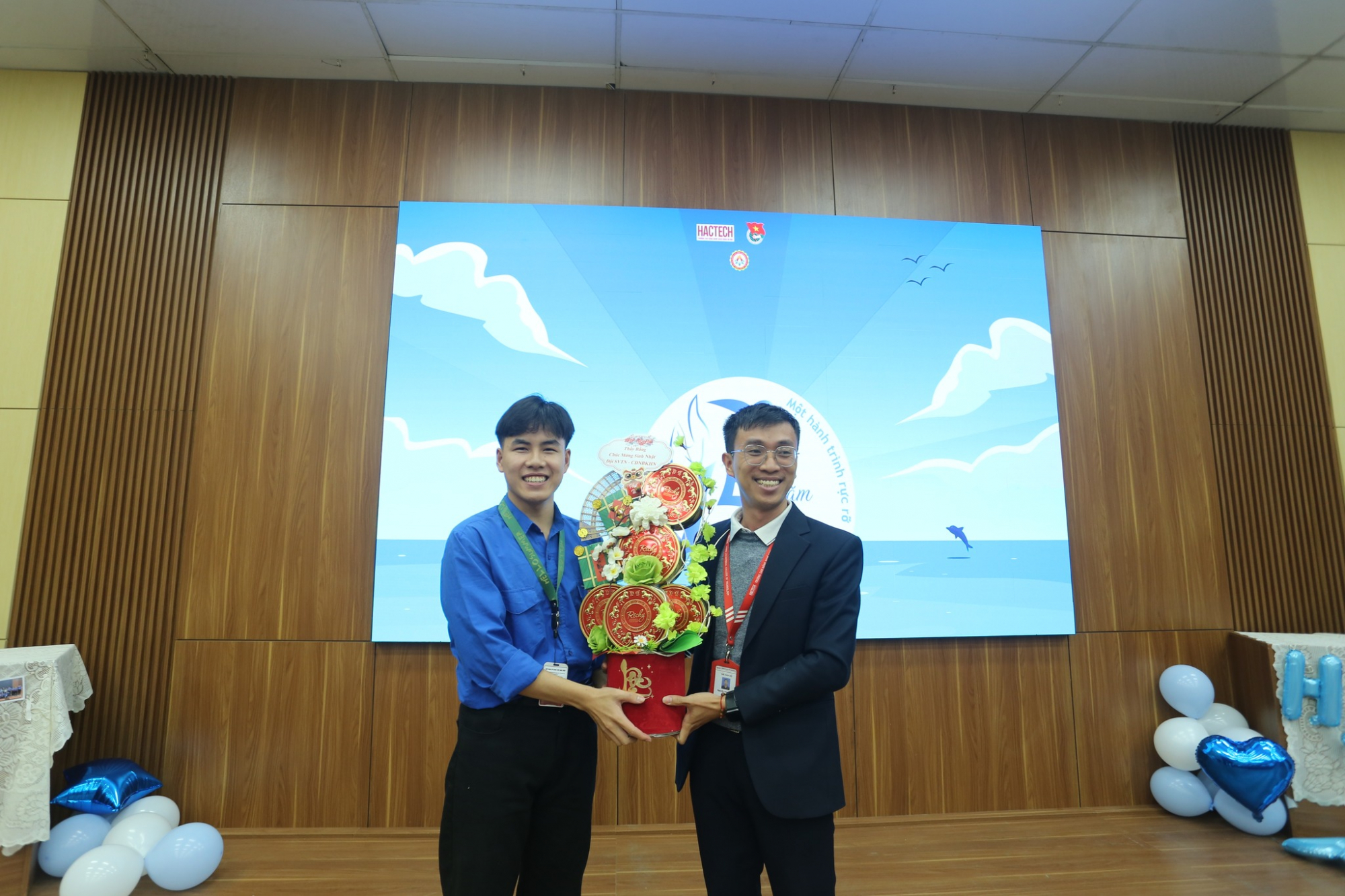 Đồng chí Nguyễn Hữu Bằng tặng hoa chúc mừng Đội SVTN HACTECH tròn 15 tuổi