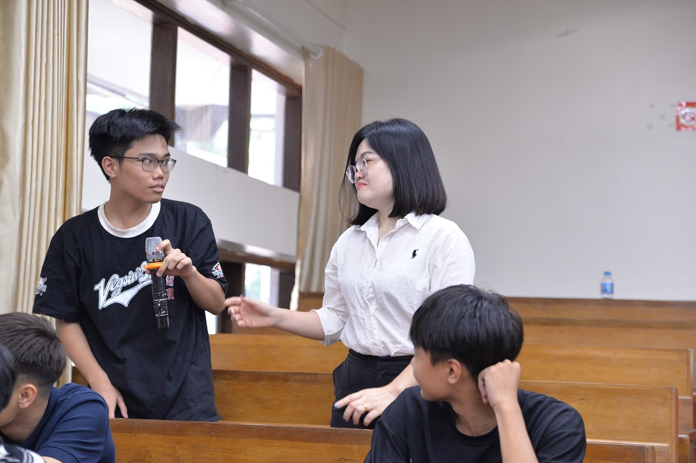 Cô giáo trao đổi với sinh viên về ý nghĩa của học tiếng Anh