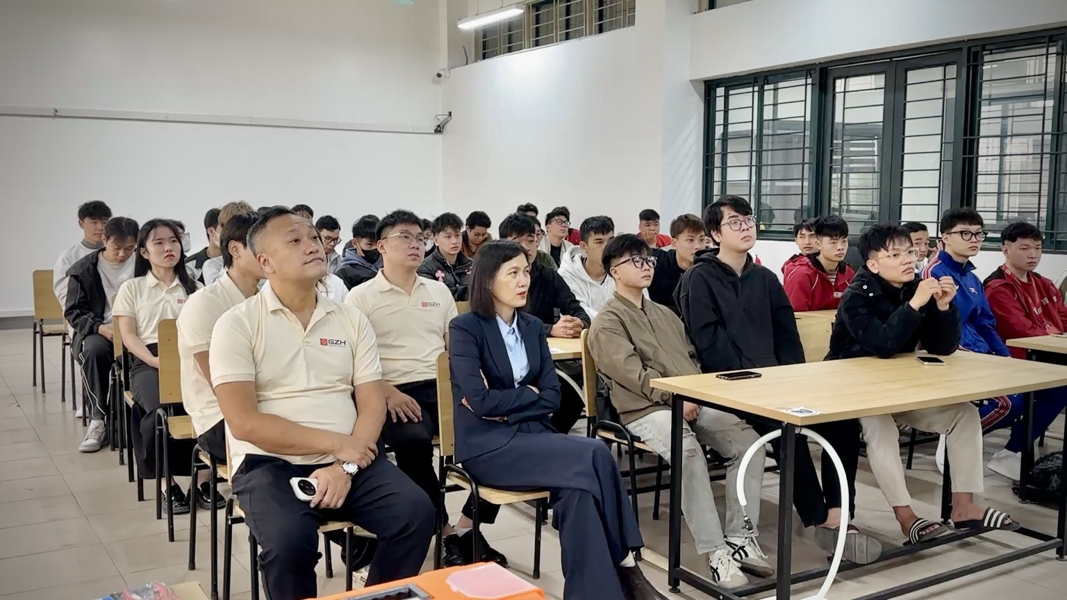 Tham dự sự kiện, về phía Nhà trường có ThS. Trần Thị Như Trang – Trưởng phòng Đào tạo và Quản lý sinh viên cùng sinh viên các lớp Cơ điện tử, Điện tử công nghiệp CLC K16, lớp Điện dân dụng K16. Về phía dự án có đại diện công ty GTV, dự án GZH chị Trần Huyền Trang, giám đốc kinh doanh; Ông Lưu Hiểu Nghị, giám đốc kỹ thuật và các chuyên gia đến từ dự án GZH.