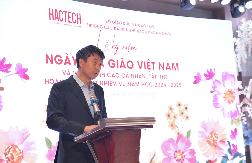 Phát biểu tại buổi lễ, TS. Nguyễn Khắc Kiểm, Hiệu trưởng HACTECH, nhấn mạnh: Đội ngũ nhà giáo HACTECH luôn là lực lượng nòng cốt tạo nên uy tín và chất lượng đào tạo của Nhà trường. Mỗi thầy cô, bằng tâm huyết và sự tận tụy, đang góp phần đưa HACTECH trở thành đơn vị đào tạo nghề uy tín tại Thủ đô và trên cả nước.