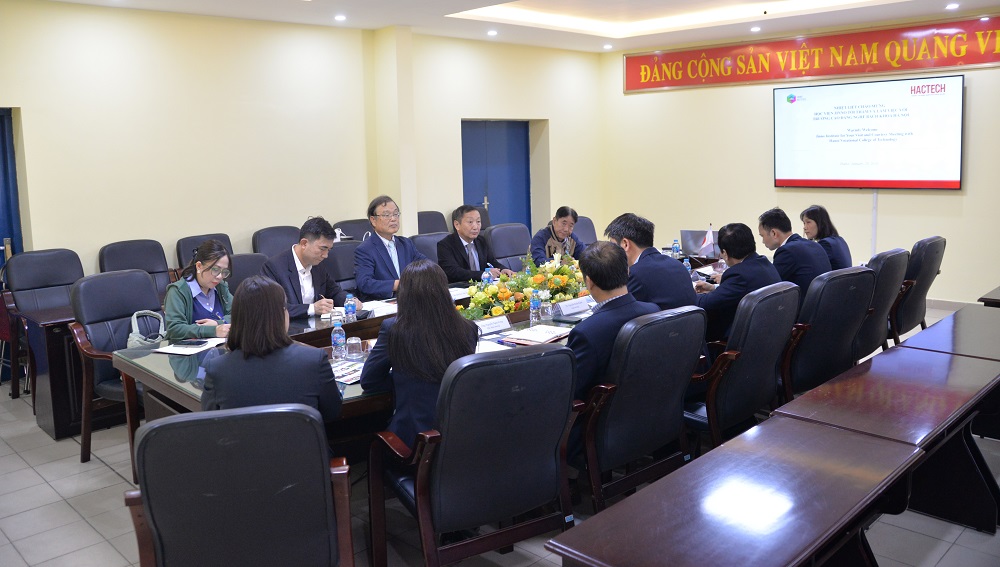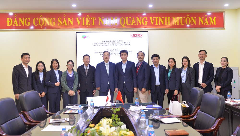 Hiệu trưởng TS. Nguyễn Khắc Kiểm chào mừng đoàn Học viện Jinno đến làm việc tại HACTECH