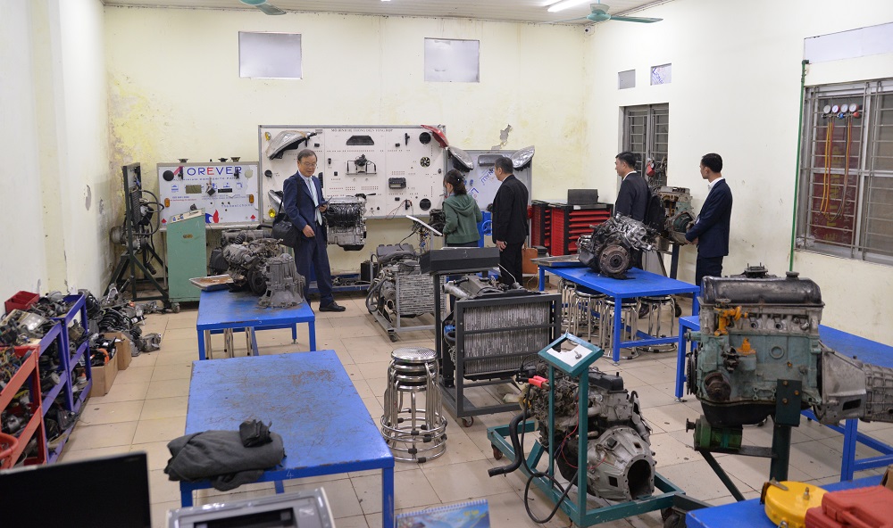 Đoàn đi tham quan xưởng thực hành nghề Công nghệ Ô tô
