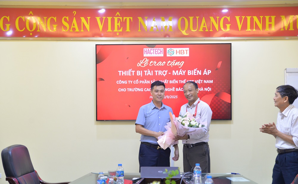 Ngày 30-9 Trường Cao đẳng nghề Bách khoa Hà Nội (HACTECH) đã tổ chức buổi lễ tiếp nhận thiết bị tài trợ máy biến áp từ HBT Việt Nam phục vụ công tác đào tạo, nghiên cứu và thực hành cho sinh viên. Đây là thiết bị có ý nghĩa quan trọng trong việc nâng cao chất lượng giảng dạy các ngành kỹ thuật điện – điện tử của nhà trường.
