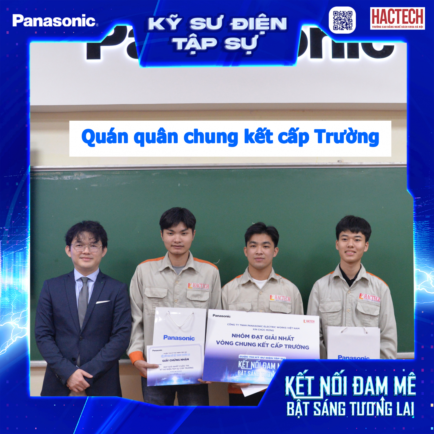 Kết quả chung cuộc, Nhóm 4 đã xuất sắc giành Giải Nhất, trở thành Quán quân cấp Trường cuộc thi “Kỹ sư điện tập sự” năm 2025.