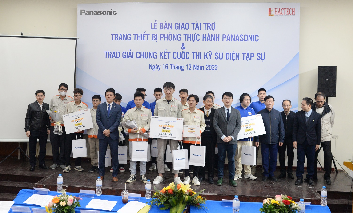 Sau đó, Ban tổ chức đã tiến hành trao giải cho các đội thi. Đồng thời, đại diện Panasonic cũng đã trao tặng tài trợ phòng thực hành trị giá 300 triệu đồng tới lãnh đạo Nhà trường.
