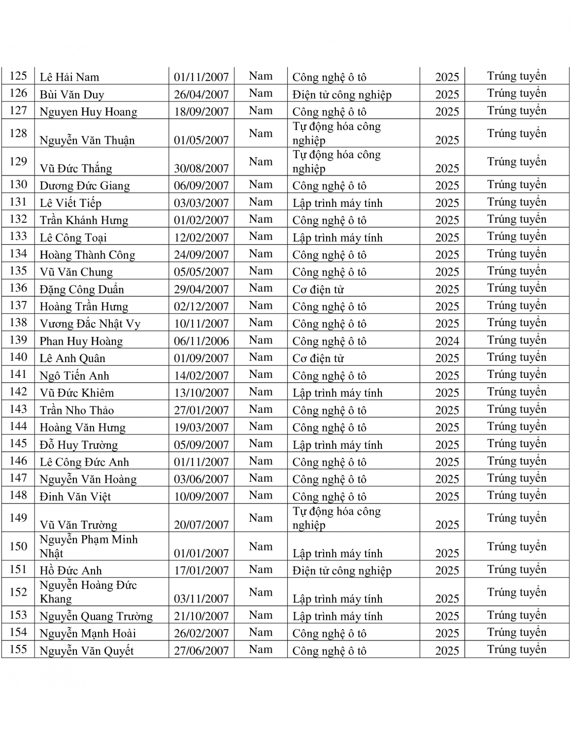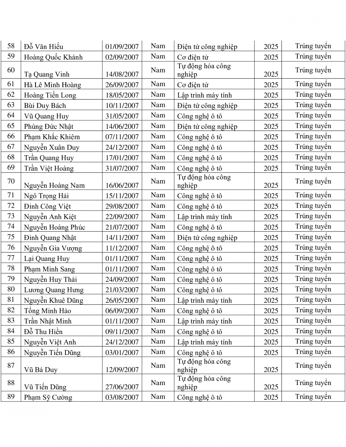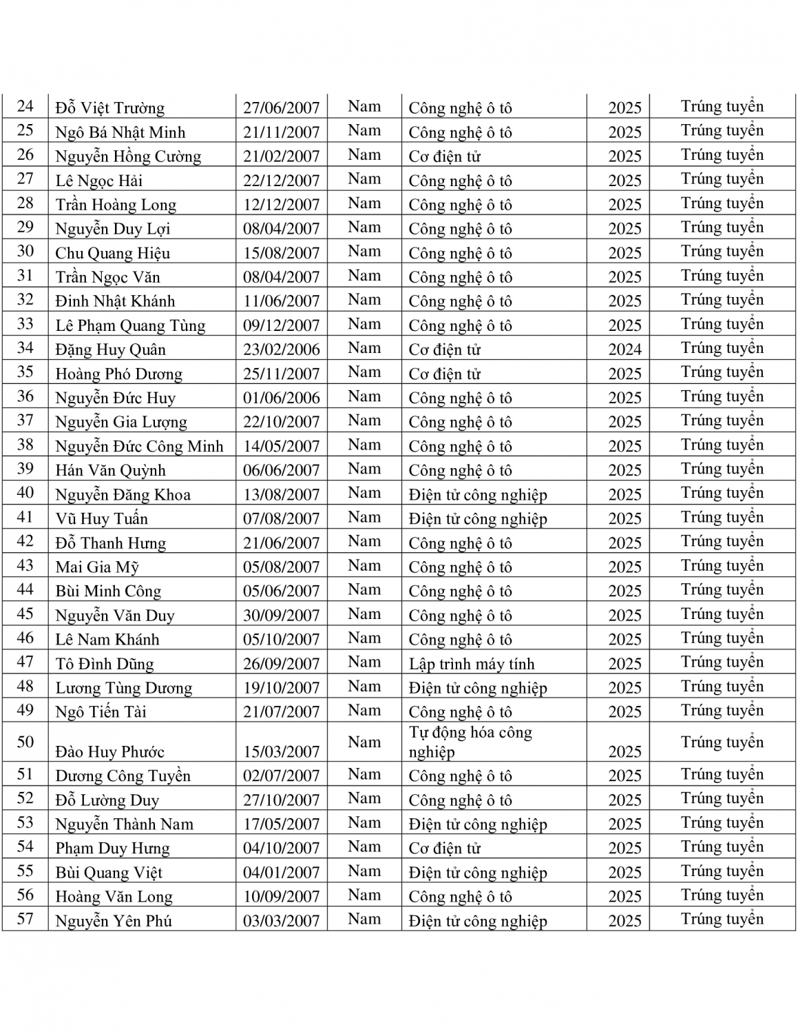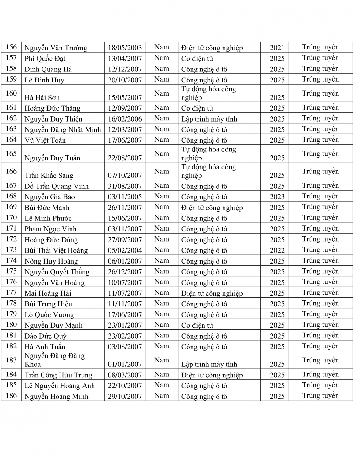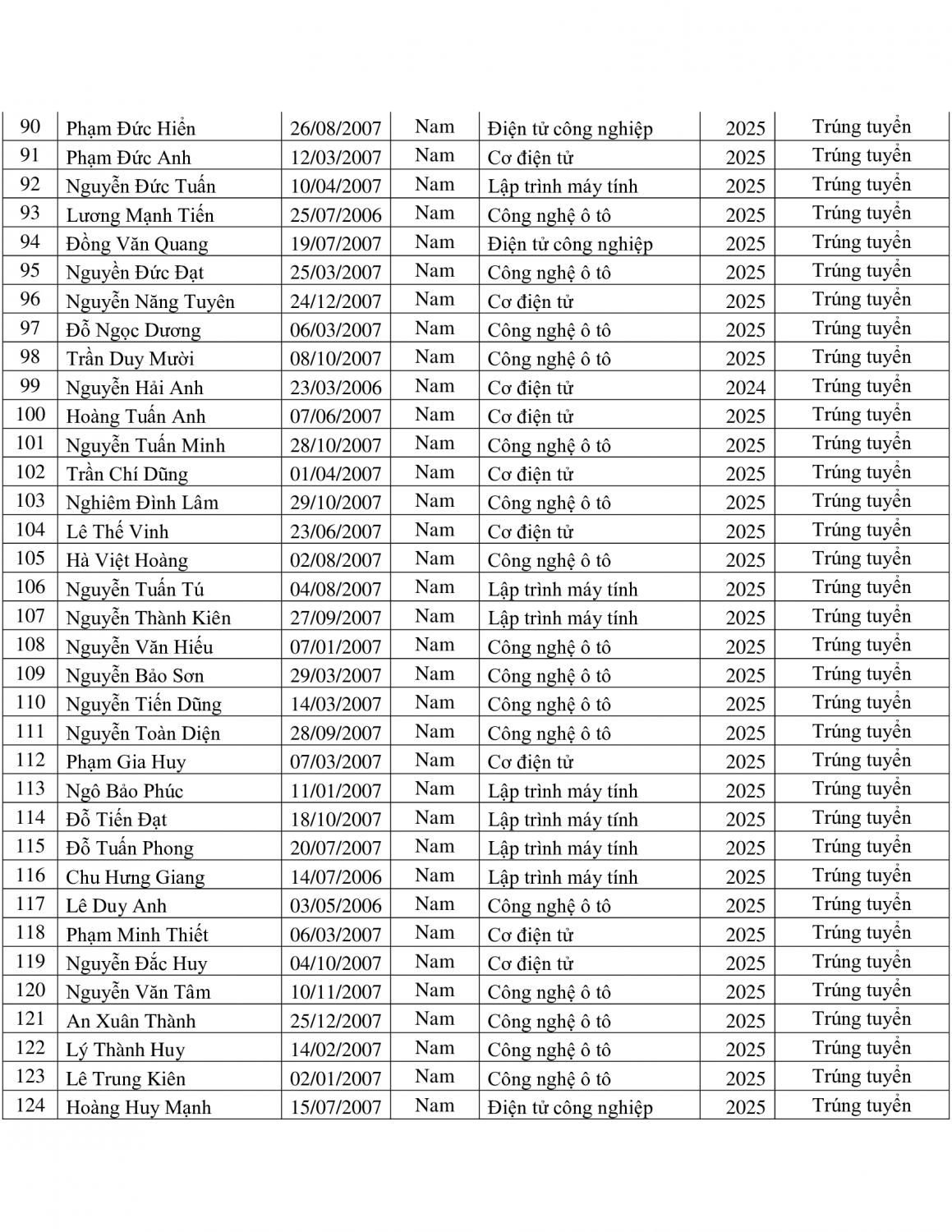 Danh sách trúng tuyển hệ Trung cấp đợt 3